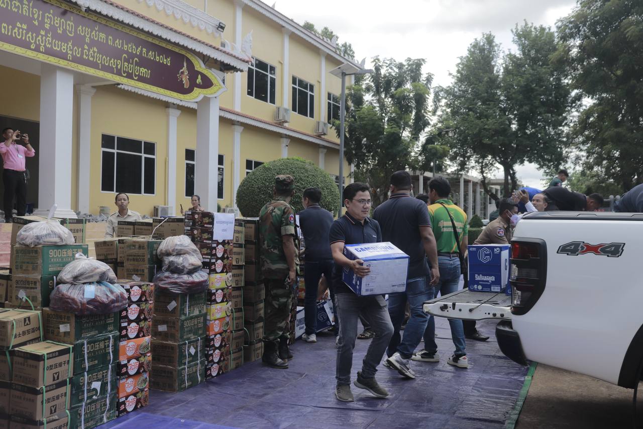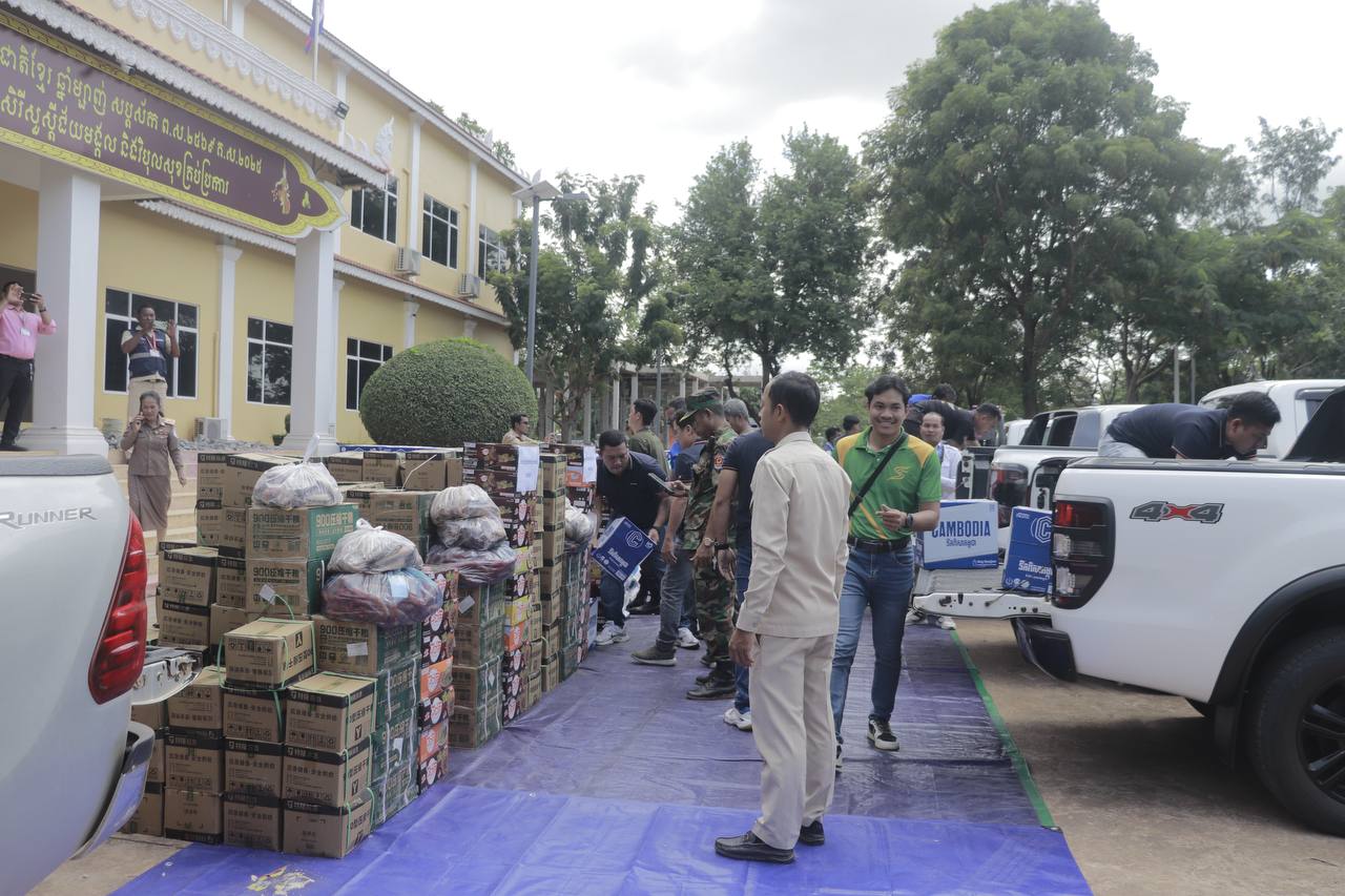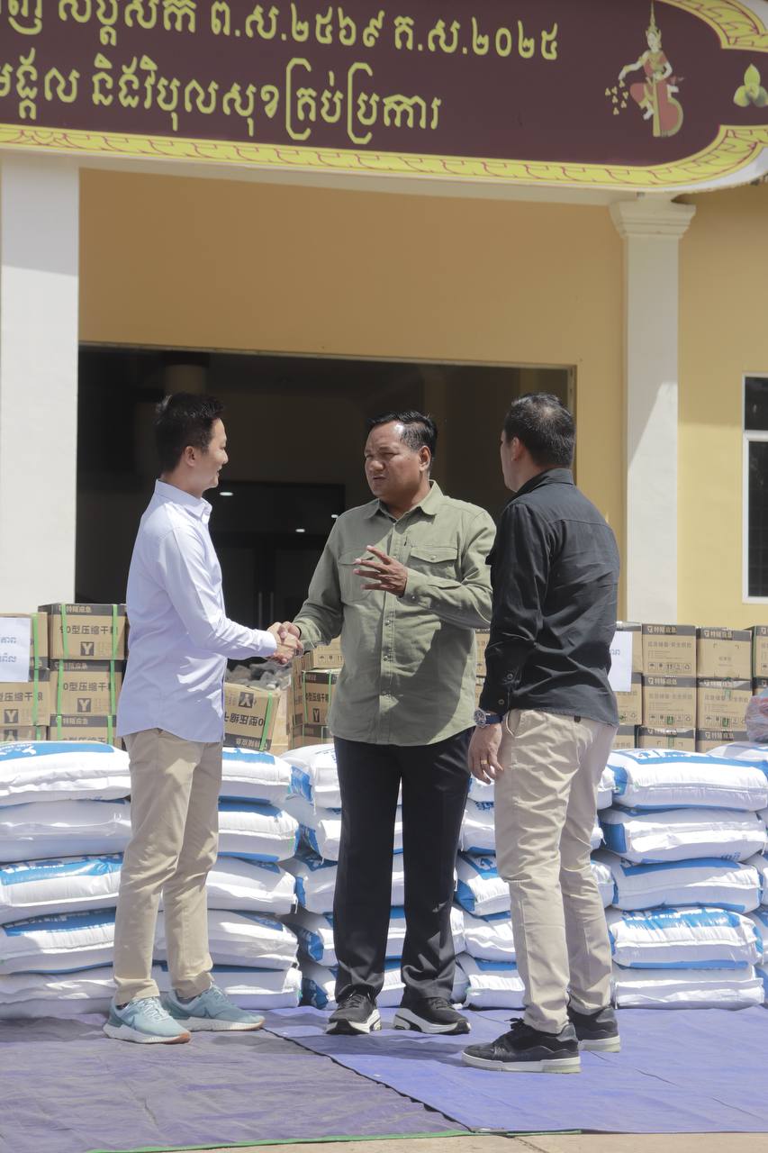 - ក្រុមហ៊ុន ស៊ីណាតា អិចប្រេស ឯ.ក និង រោងចក្រីទីង ឧបត្ថម្ភ ទឹកសុទ្ធ ១៣៥ កេស អង្ករ ២តោន មីជាតិ ១០០កេស សាច់ក្រក ១០០គីឡូ ត្រីងៀត ១០០គីឡូ នំ៩០០ ៥០កេស។